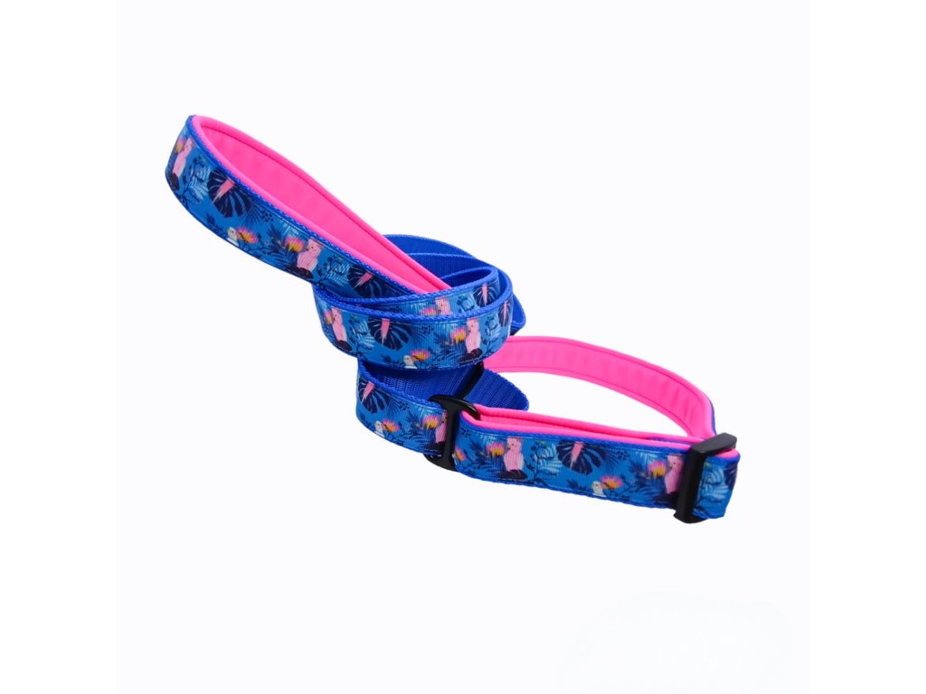 Agility vodítko je vyrobeno z PP popruhu o šířce 25 mm a je podšito softshellem (obojek + rukojeť). Velikost obojku je nastavitelná.