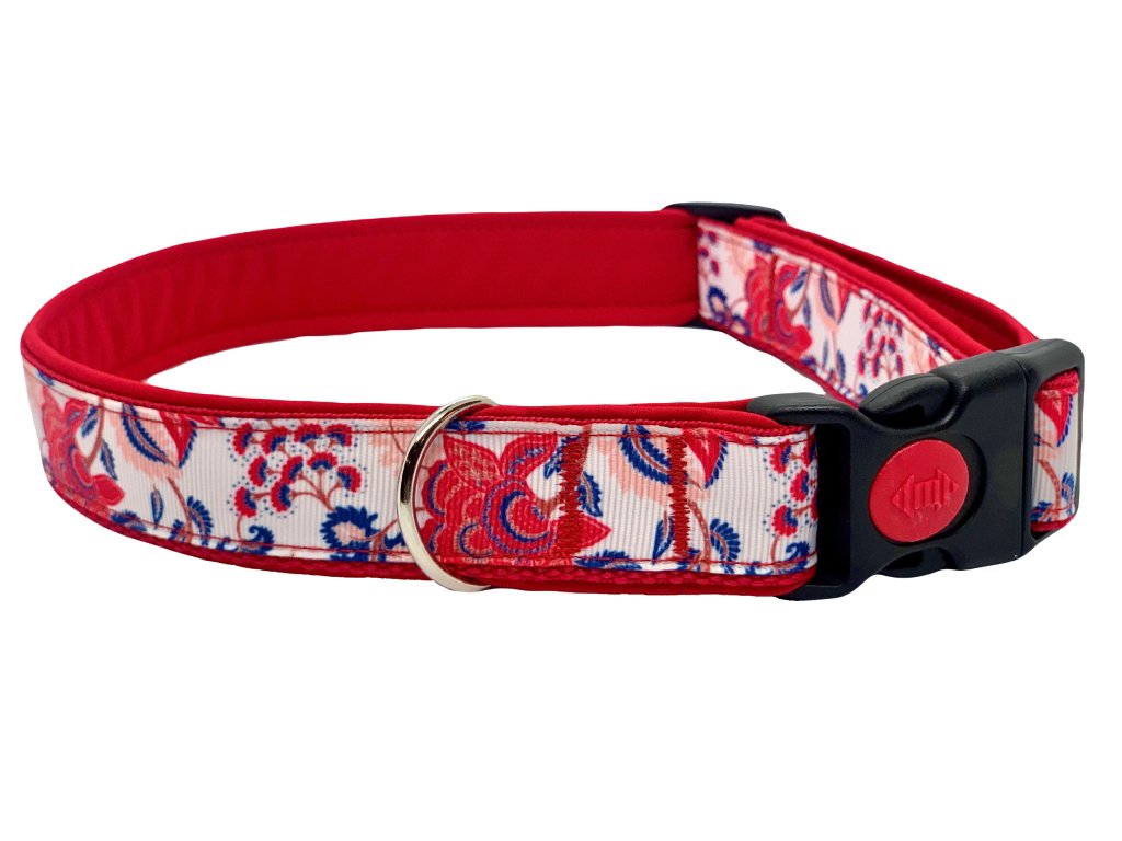 Obojek Retro květiny červená