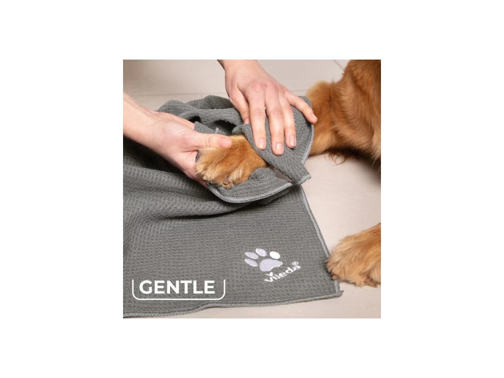 Tento čisticí ručník Vileda Pet je skvělým pomocníkem pro rychlé a účinné čištění a jemné sušení tlapek po každé procházce. Měkký ručník je vyroben z mikrovlákna, díky čemuž rychle schne. Speciální vaflová struktura jemně odstraňuje nečistoty z tlapek a srsti. Ručník je velmi odolný, lze ji prát v pračce až na 60 °C.